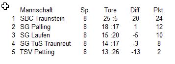 Sieger: SBC Traunstein > Gewinner Trikotsatz: SG Siegsdorf > Gewinner Eintrittskarten Salzbergwerk: SG Palling |