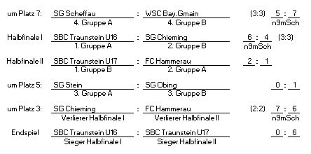 Sieger: SBC Traunstein U17 > Gewinner Trikotsatz: SBC Traunstein U17 > Gewinner Karten Salzbergwerk: SG Obing |